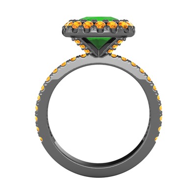 Yeşil kuvars ve sitrin 925 ayar siyah rodyum kaplama gümüş yüzük