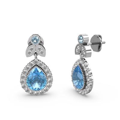 Akuamarin ve beyaz zirkon 8 ayar beyaz altın küpe