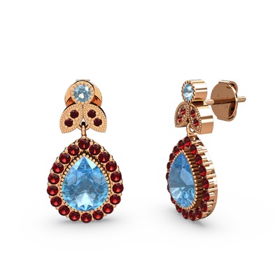 Akuamarin ve garnet 18 ayar rose altın küpe