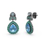 Akuamarin ve kök zümrüt 925 ayar siyah rodyum kaplama gümüş küpe
