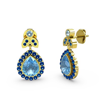 Akuamarin ve lab safir 925 ayar altın kaplama gümüş küpe