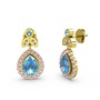 Akuamarin ve pembe kuvars 18 ayar altın küpe