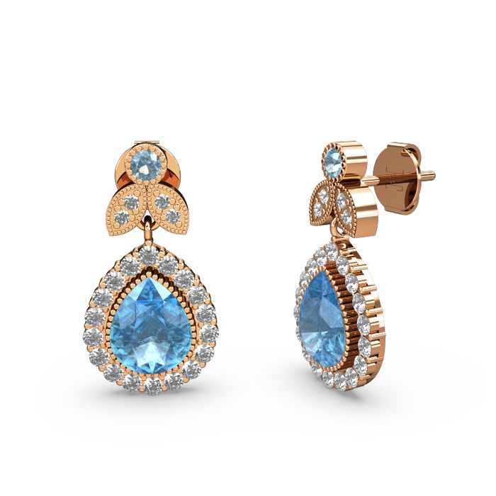 Akuamarin ve swarovski 14 ayar rose altın küpe