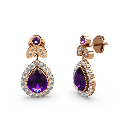 Ametist ve beyaz zirkon 18 ayar rose altın küpe