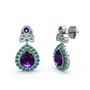 Ametist ve kök zümrüt 8 ayar beyaz altın küpe