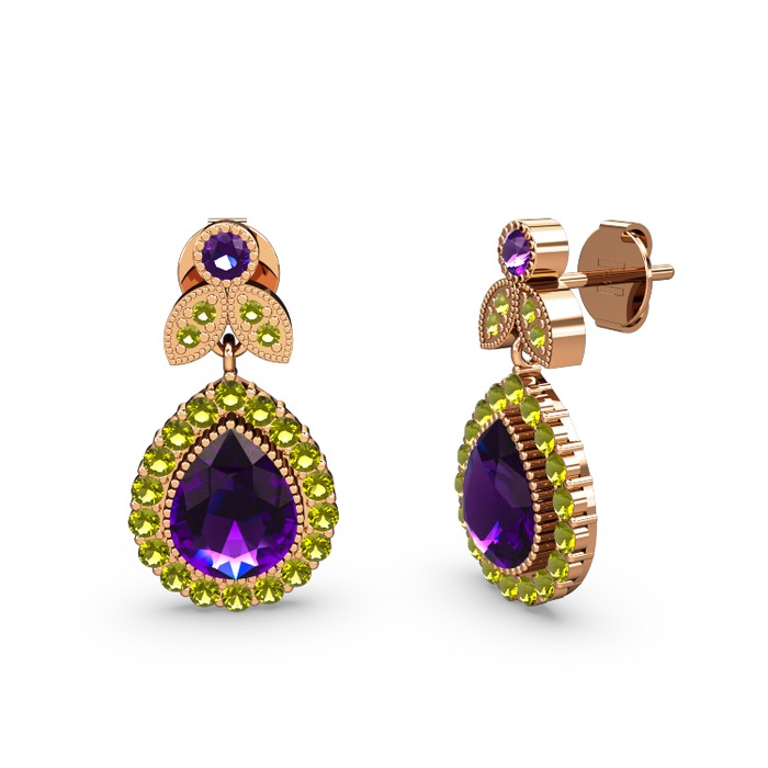 Ametist ve peridot 925 ayar rose altın kaplama gümüş küpe