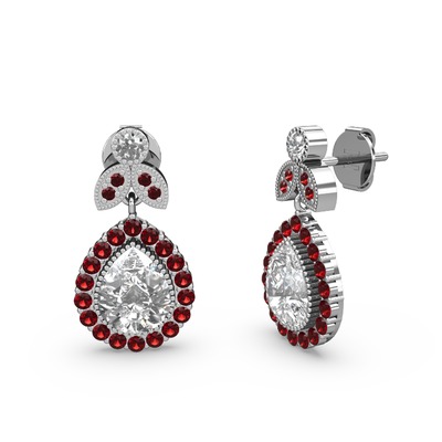 Beyaz zirkon ve garnet 925 ayar gümüş küpe