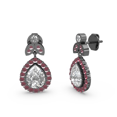 Beyaz zirkon ve kök yakut 925 ayar siyah rodyum kaplama gümüş küpe