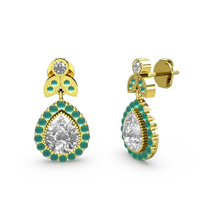 Beyaz zirkon ve kök zümrüt 925 ayar altın kaplama gümüş küpe