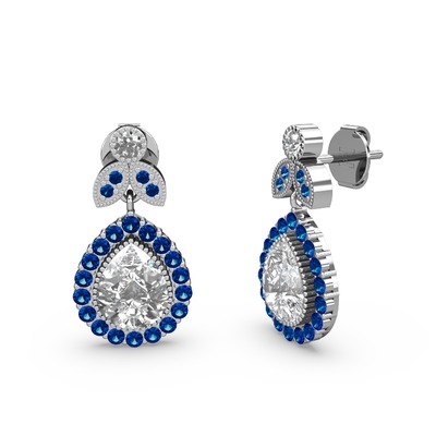 Beyaz zirkon ve lab safir 925 ayar gümüş küpe