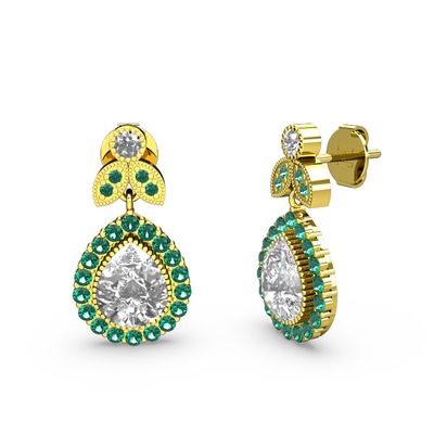 Beyaz zirkon ve yeşil kuvars 18 ayar altın küpe