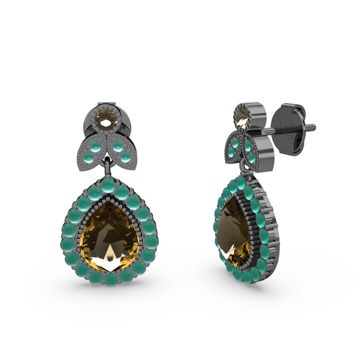 Dumanlı kuvars ve kök zümrüt 925 ayar siyah rodyum kaplama gümüş küpe