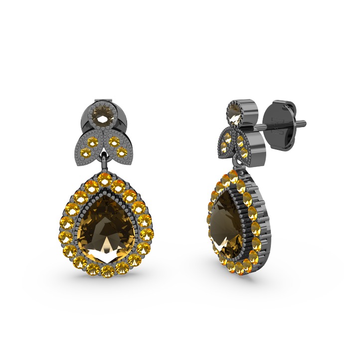 Dumanlı kuvars ve sitrin 925 ayar siyah rodyum kaplama gümüş küpe