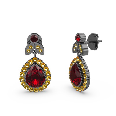 Garnet ve sitrin 925 ayar siyah rodyum kaplama gümüş küpe