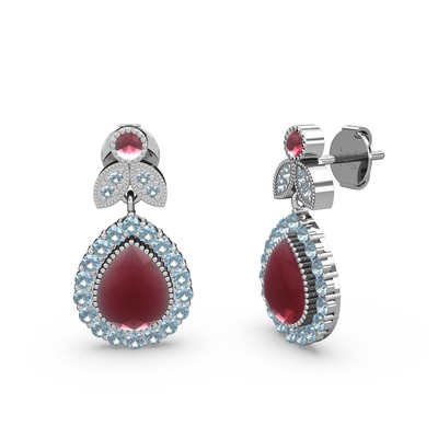 Kök yakut ve akuamarin 14 ayar beyaz altın küpe
