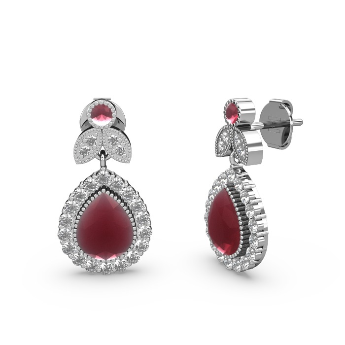 Kök yakut ve beyaz zirkon 8 ayar beyaz altın küpe