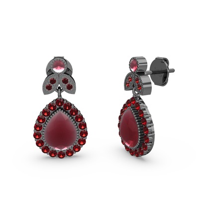 Kök yakut ve garnet 925 ayar siyah rodyum kaplama gümüş küpe