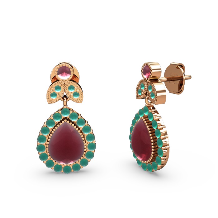 Kök yakut ve kök zümrüt 8 ayar rose altın küpe