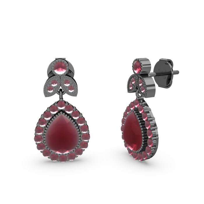 Kök yakut 925 ayar siyah rodyum kaplama gümüş küpe