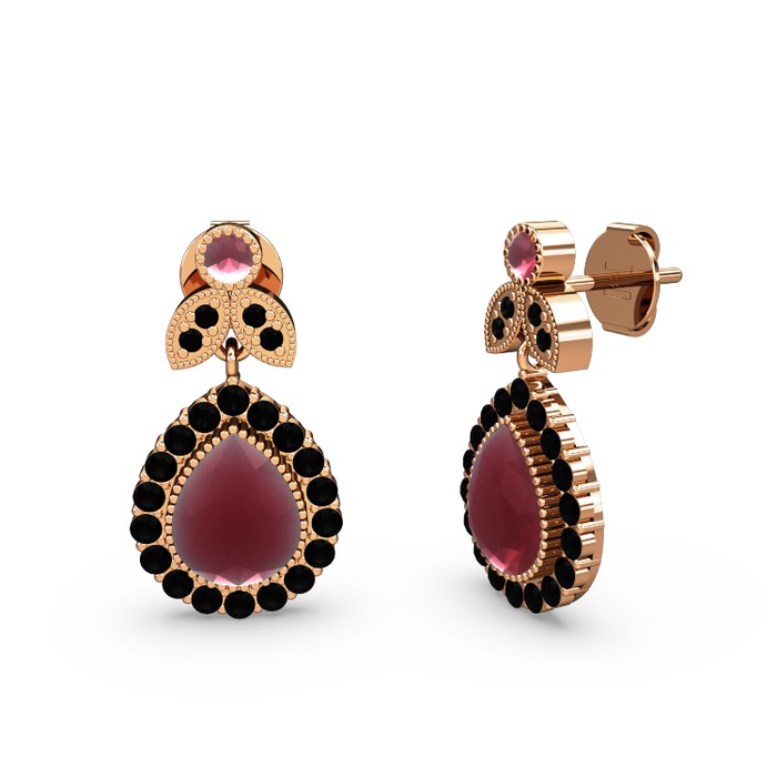 Kök yakut ve siyah zirkon 14 ayar rose altın küpe