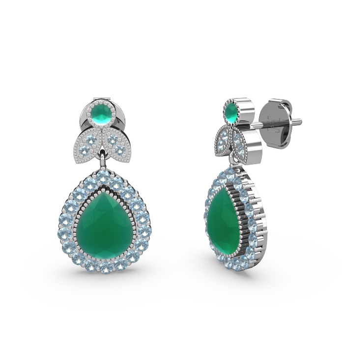 Kök zümrüt ve akuamarin 14 ayar beyaz altın küpe