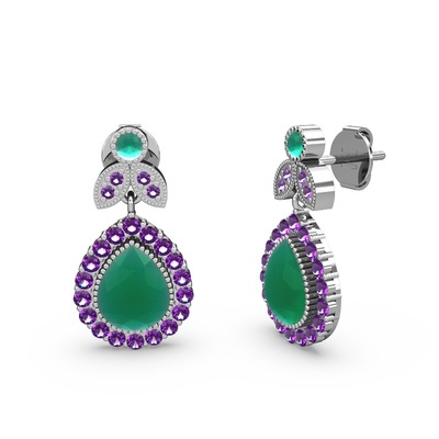 Kök zümrüt ve ametist 18 ayar beyaz altın küpe