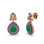 Kök zümrüt ve ametist 8 ayar rose altın küpe