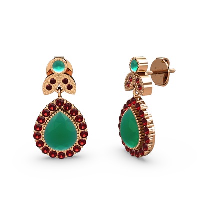 Kök zümrüt ve garnet 8 ayar rose altın küpe