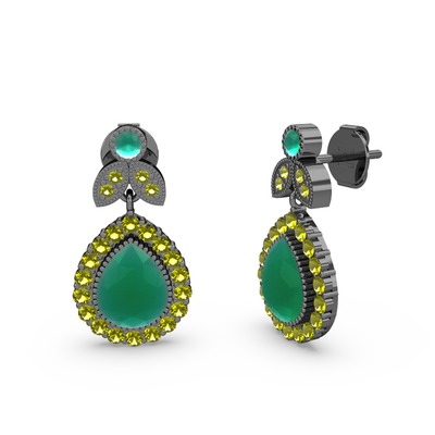Kök zümrüt ve peridot 925 ayar siyah rodyum kaplama gümüş küpe