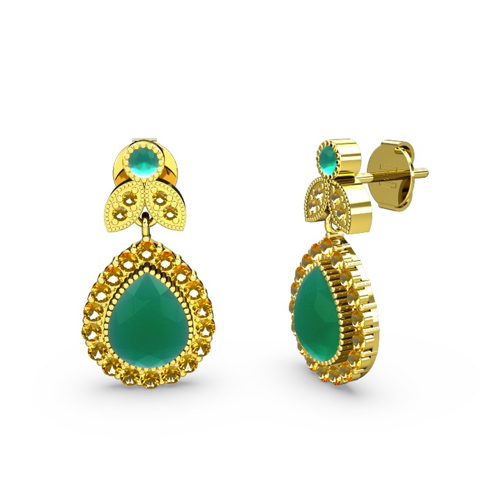 Kök zümrüt ve sitrin 14 ayar altın küpe
