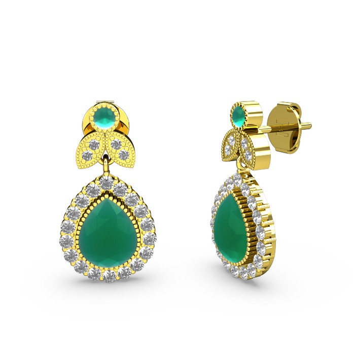 Kök zümrüt ve swarovski 18 ayar altın küpe
