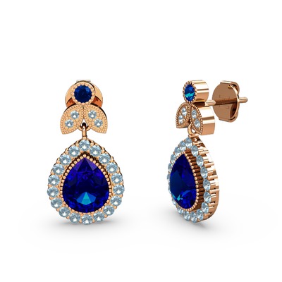 Lab safir ve akuamarin 18 ayar rose altın küpe