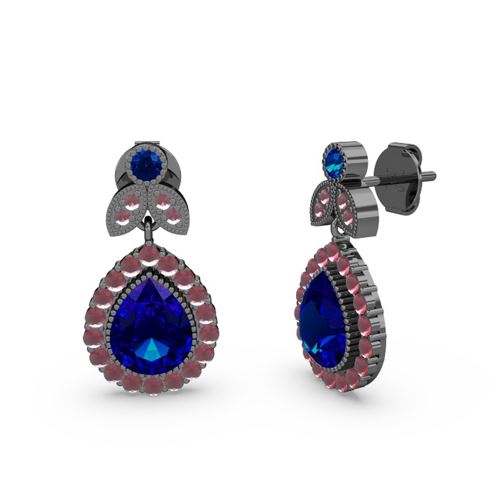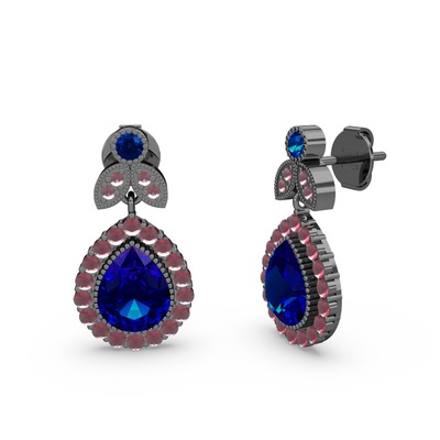 Lab safir ve kök yakut 925 ayar siyah rodyum kaplama gümüş küpe