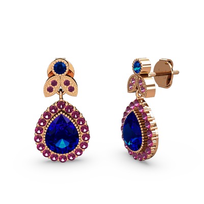 Lab safir ve rodolit garnet 925 ayar rose altın kaplama gümüş küpe