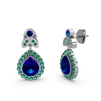 Lab safir ve yeşil kuvars 8 ayar beyaz altın küpe