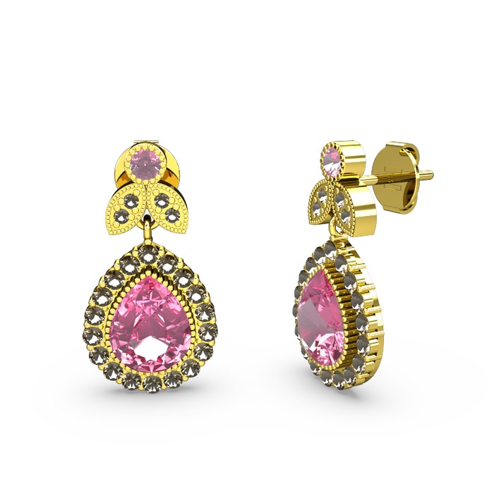 Pembe kuvars ve dumanlı kuvars 14 ayar altın küpe