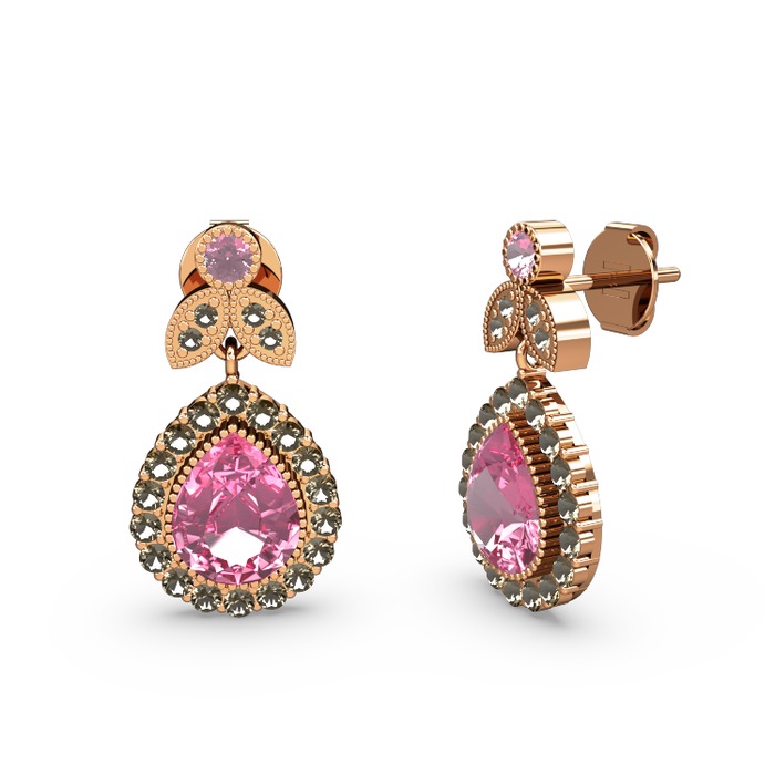 Pembe kuvars ve dumanlı kuvars 14 ayar rose altın küpe