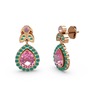 Pembe kuvars ve kök zümrüt 14 ayar rose altın küpe