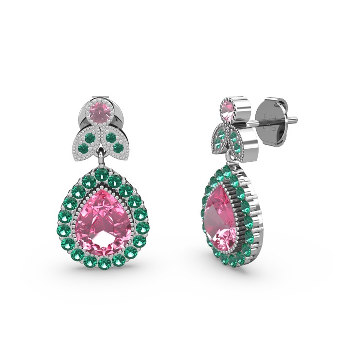 Pembe kuvars ve yeşil kuvars 14 ayar beyaz altın küpe