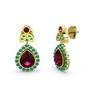 Rodolit garnet ve kök zümrüt 925 ayar altın kaplama gümüş küpe
