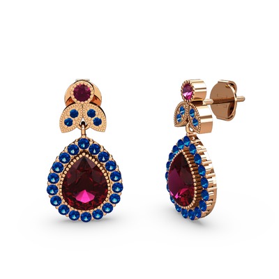 Rodolit garnet ve lab safir 14 ayar rose altın küpe