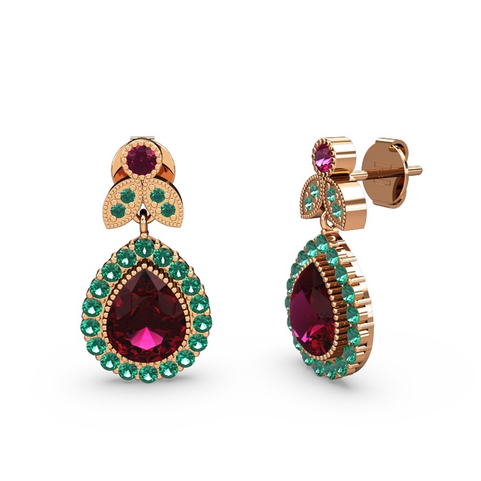 Rodolit garnet ve yeşil kuvars 8 ayar rose altın küpe