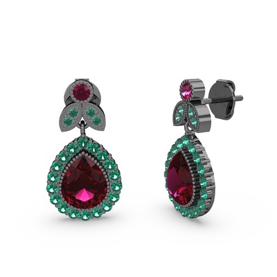Rodolit garnet ve yeşil kuvars 925 ayar siyah rodyum kaplama gümüş küpe