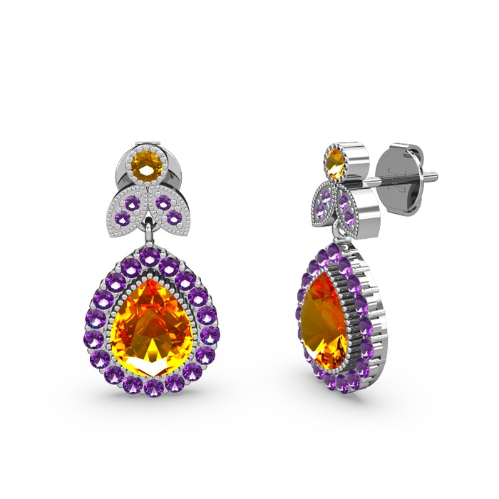 Sitrin ve ametist 8 ayar beyaz altın küpe