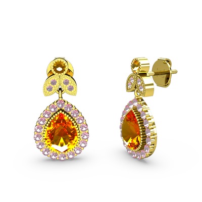 Sitrin ve pembe kuvars 925 ayar altın kaplama gümüş küpe