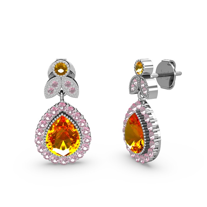 Sitrin ve pembe kuvars 925 ayar gümüş küpe