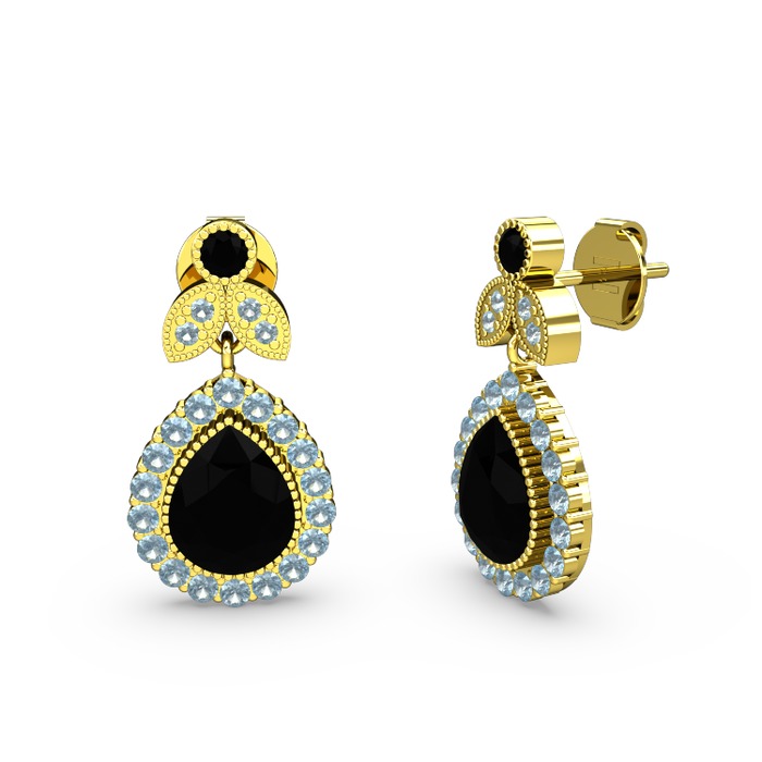 Siyah zirkon ve akuamarin 925 ayar altın kaplama gümüş küpe