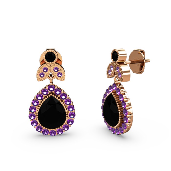 Siyah zirkon ve ametist 925 ayar rose altın kaplama gümüş küpe