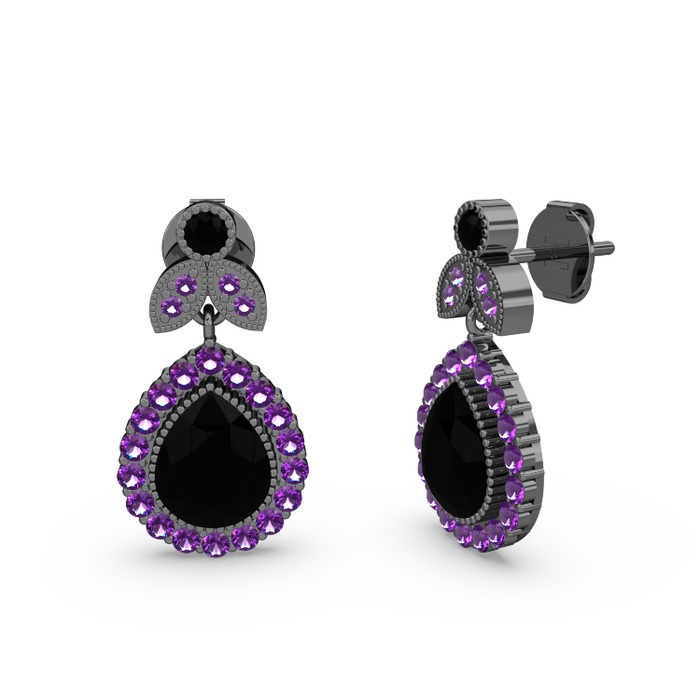 Siyah zirkon ve ametist 925 ayar siyah rodyum kaplama gümüş küpe