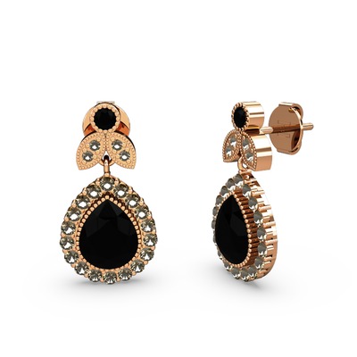 Siyah zirkon ve dumanlı kuvars 925 ayar rose altın kaplama gümüş küpe